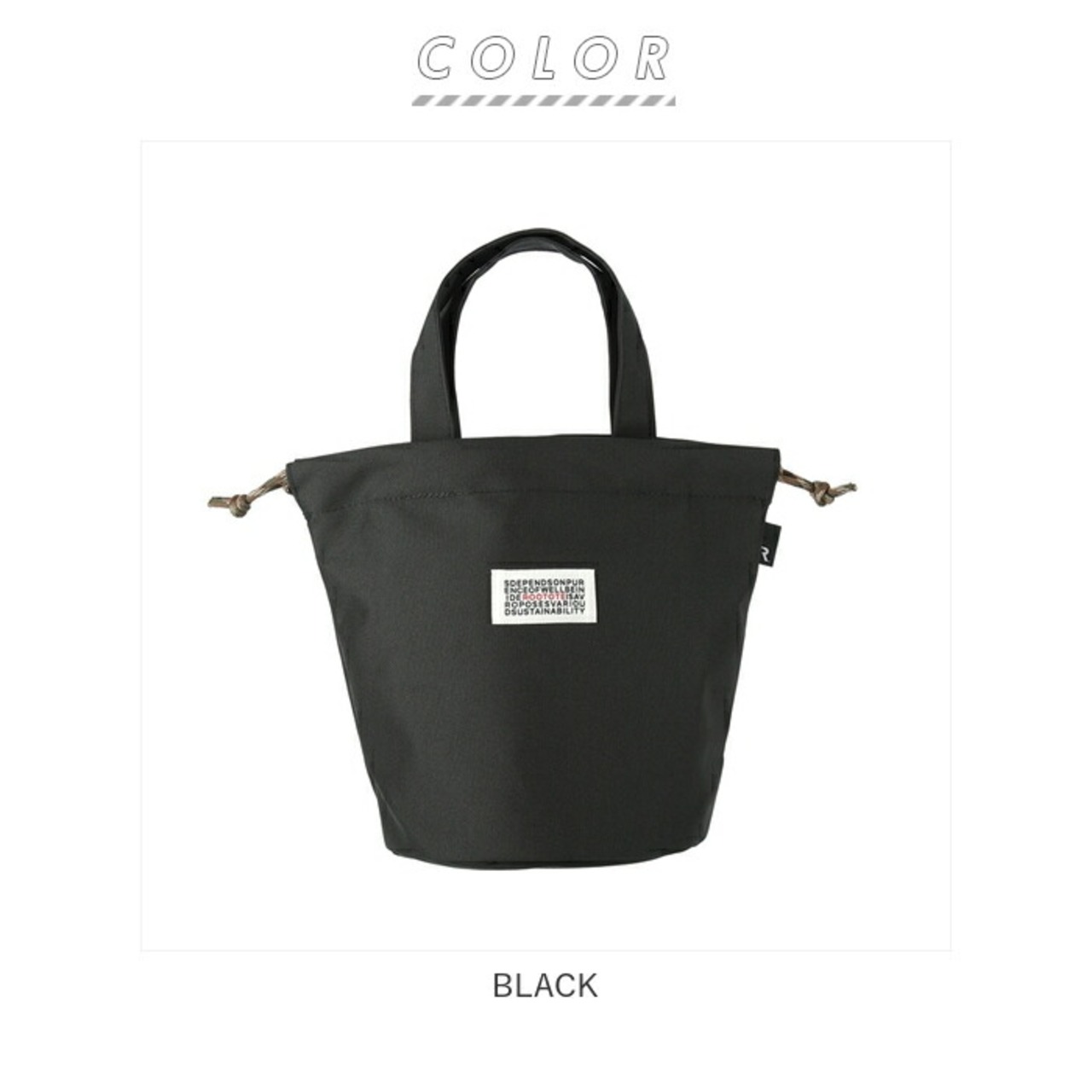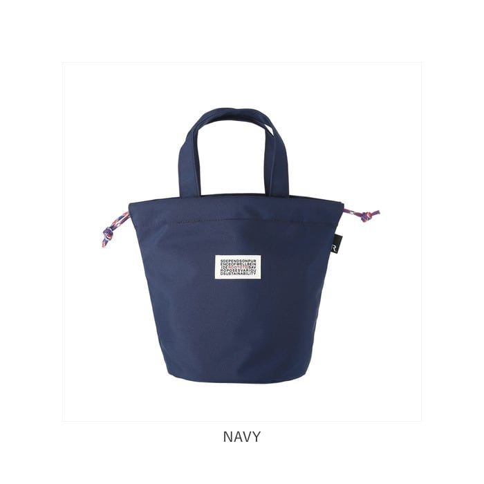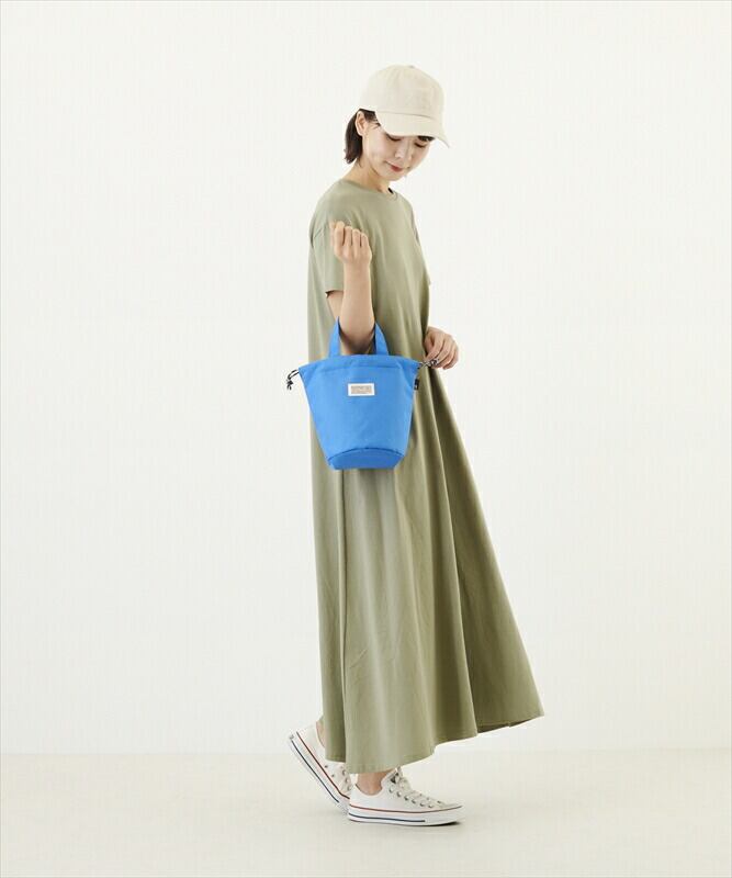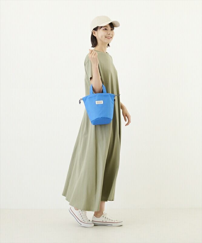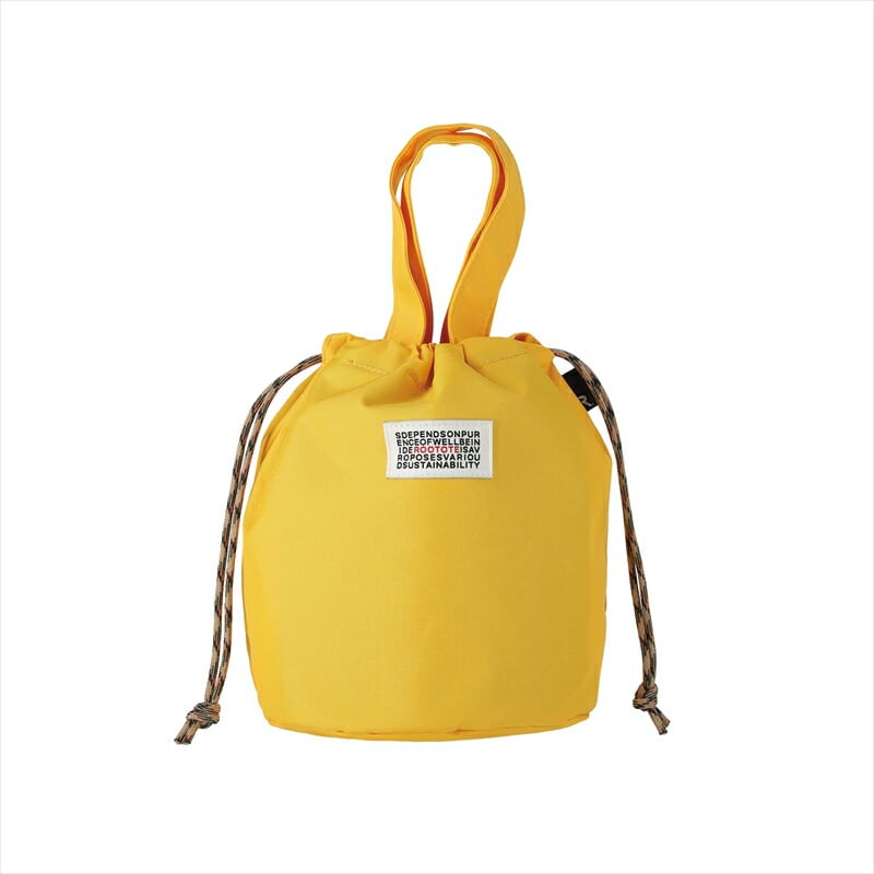 ・ひもで絞って巾着のように使うこともできます。巾着を絞ると、丸みのあるフォルムに。シンプルだけど、オシャレで機能的。たいせつなモノを持ち運びする時は、巾着をしっかり絞れば、安心して持ち運びができます。