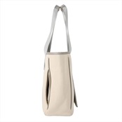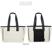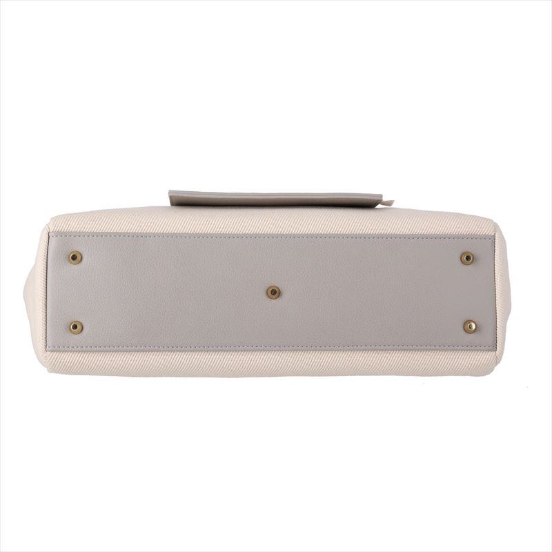 ・光沢感のある持ち手テープがポイントのかっちりしたフォルム。自立するしっかりしたつくり。かわいいものの中にも、大人っぽい仕上がりを意識しています。キャンバスとフェイクレザーのコンビが魅力。