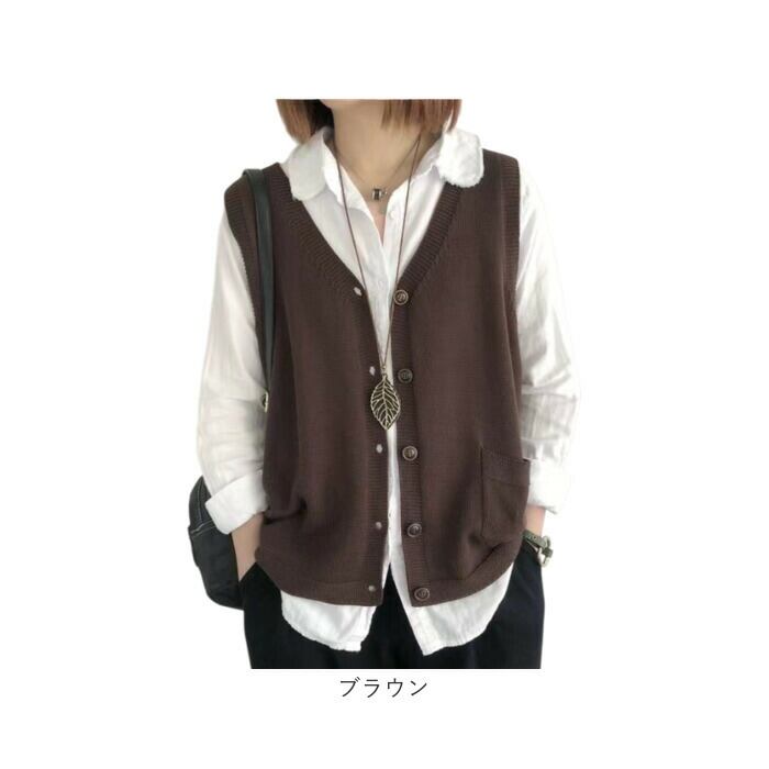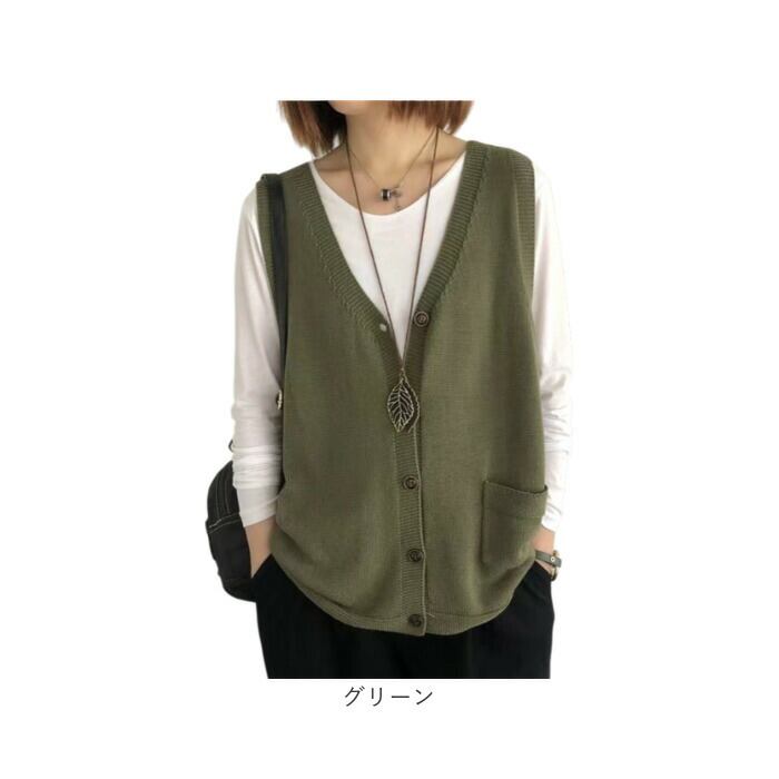 ニットベスト 前開き ディース 通販 ニット ベスト カーディンガン レディースベスト レイヤード 重ね着 普段着 Vネック ノースリーブ 体型カバー ゆったり 着回し 無地 ナチュラル シンプル 大人 カジュアル 秋 春 冬 おしゃれ トップス