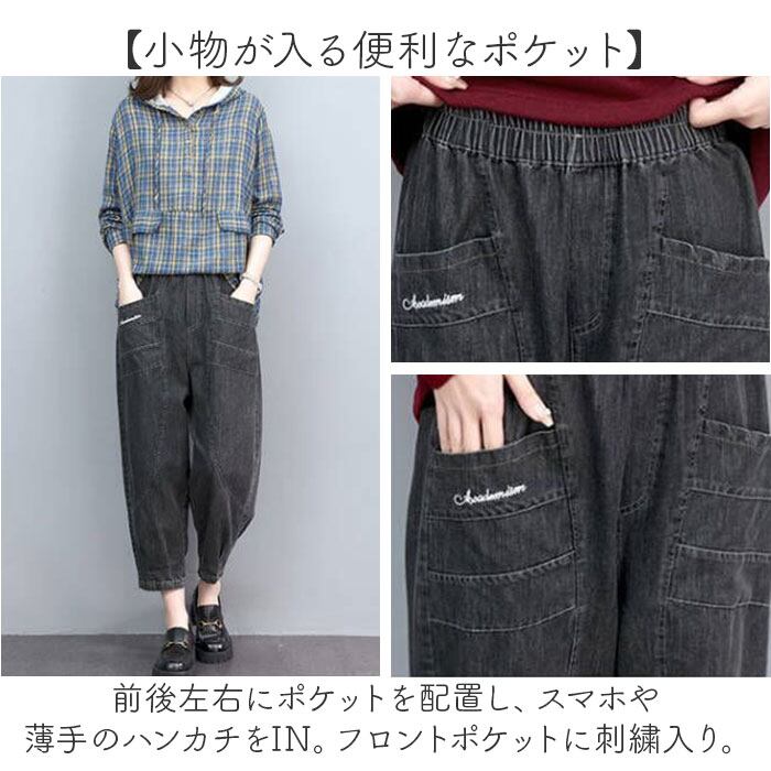 ・腰や太もも周りはゆったりカバー。ウエストにギャザーを入れ裾に向かって細くなるシルエット♪