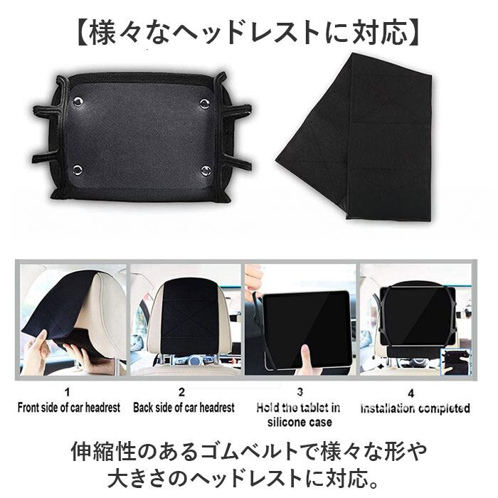 ・伸縮性のあるゴムベルトで様々な形や大きさのヘッドレストに対応。