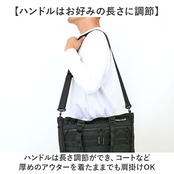 ・ハンドルは長さ調節ができ、コートなど厚めのアウターを着たままでも肩掛けOK