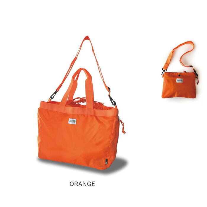 ・荷物が増えたときにはサッと広げてトートに。口元を巾着で閉めることができる大容量バッグ。