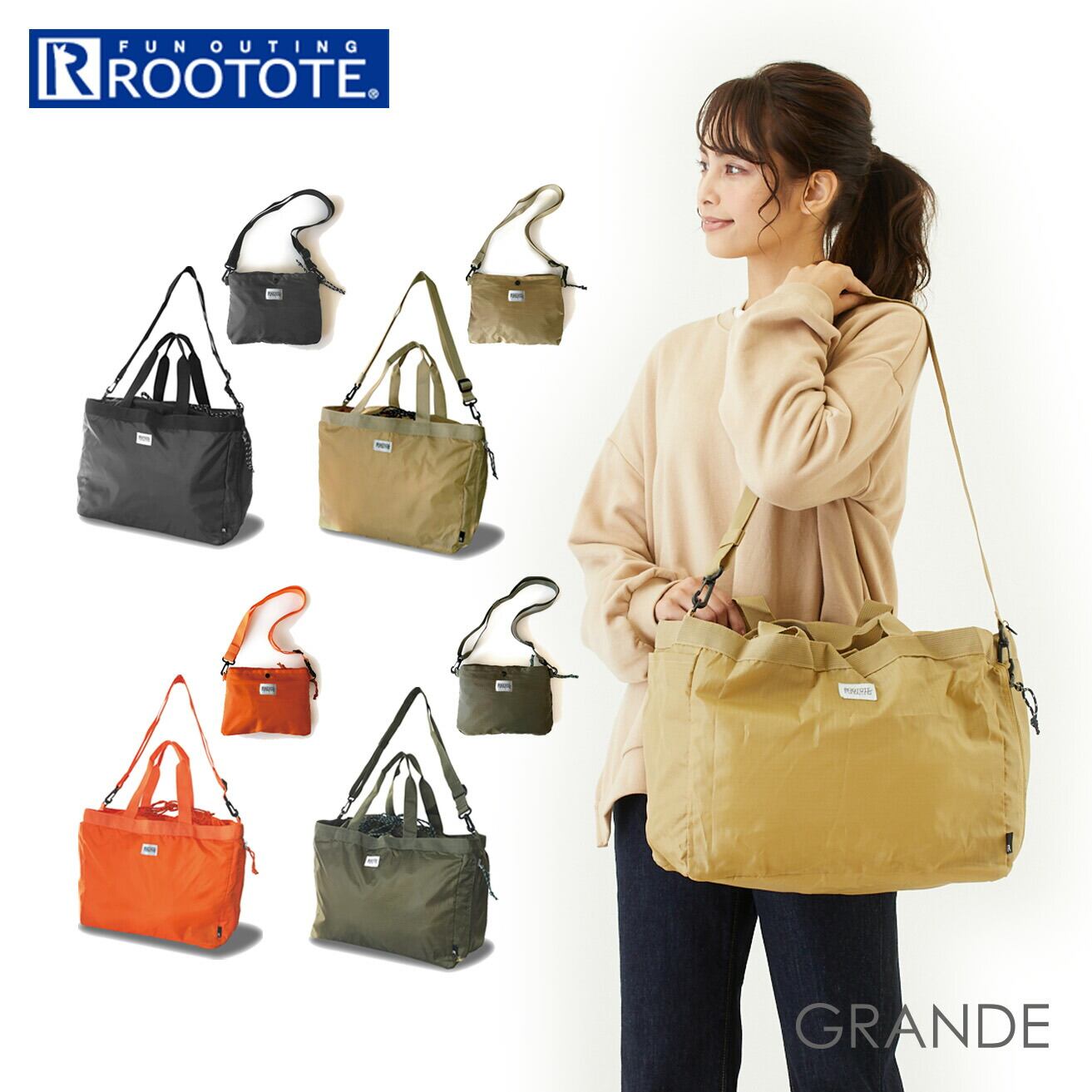 ルートート ショルダー 通販 ROOTOTE ショルダーバッグ レディース 斜めがけ 大人 トートバッグ 2way トート A4 軽量 軽い 大容量 エコバッグ 洗える 丸洗い 洗濯機 グランデ GRANDE トランシェ Tran-che おしゃれ シンプル カジュアル 6773