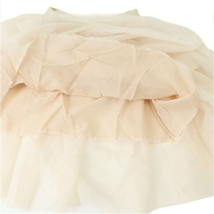 ・チュール生地を重ね、歩くたびに揺れる♪シンプルなデザインながら、華やかなコーデに。