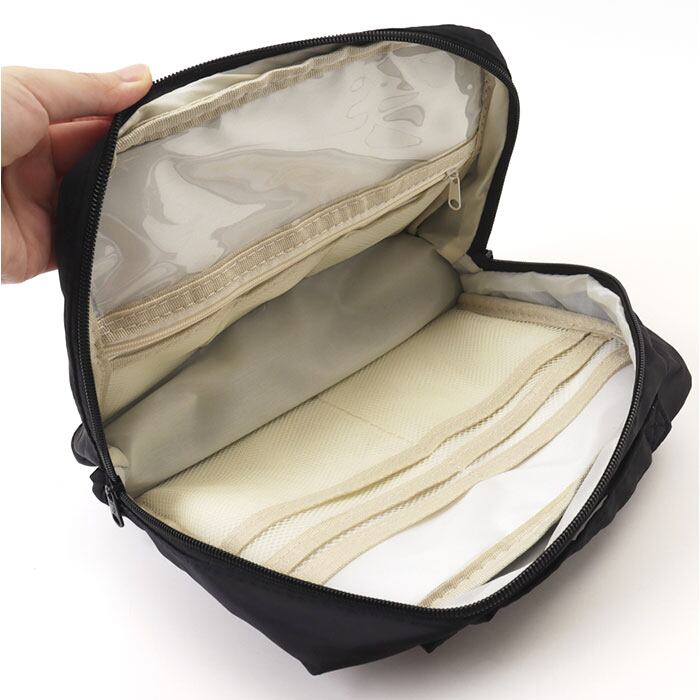 ・内側:メッシュポケット×9、ファスナー式クリアポケット×1