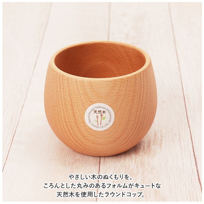 ・やさしい木のぬくもりを。ころんとした丸みのあるフォルムがキュートな天然木を使用したラウンドコップ。
