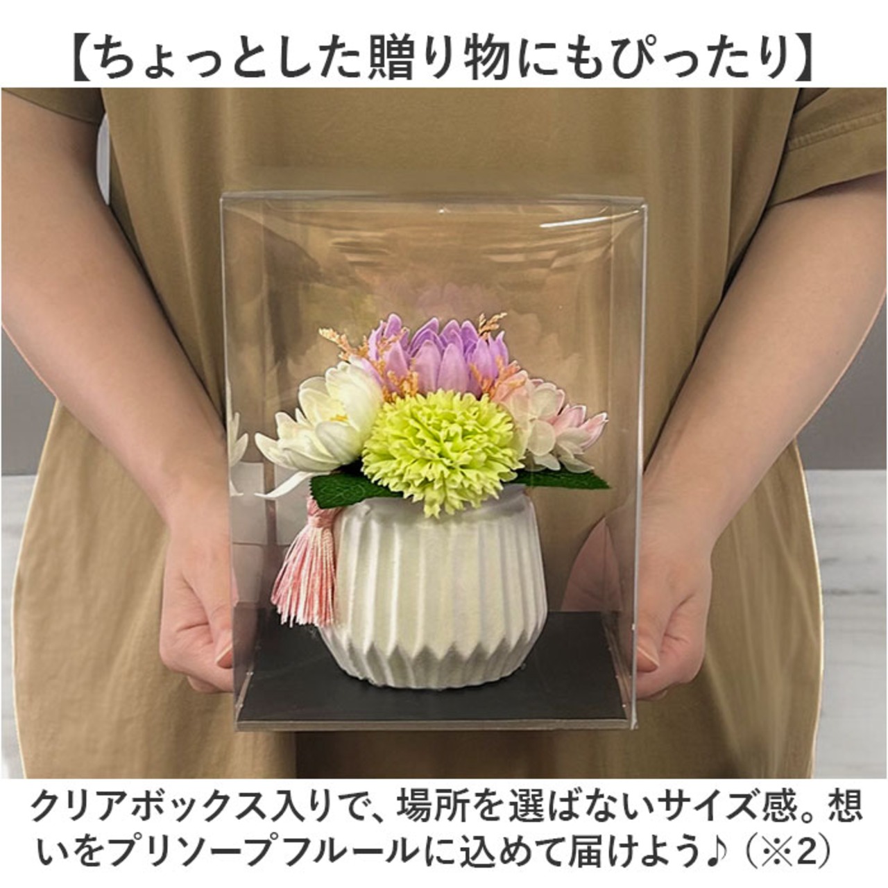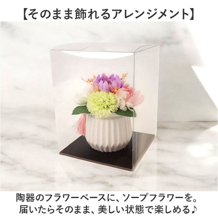 ・クリアボックス入りで、場所を選ばないサイズ感。想いをプリソープフルールに込めて届けよう♪