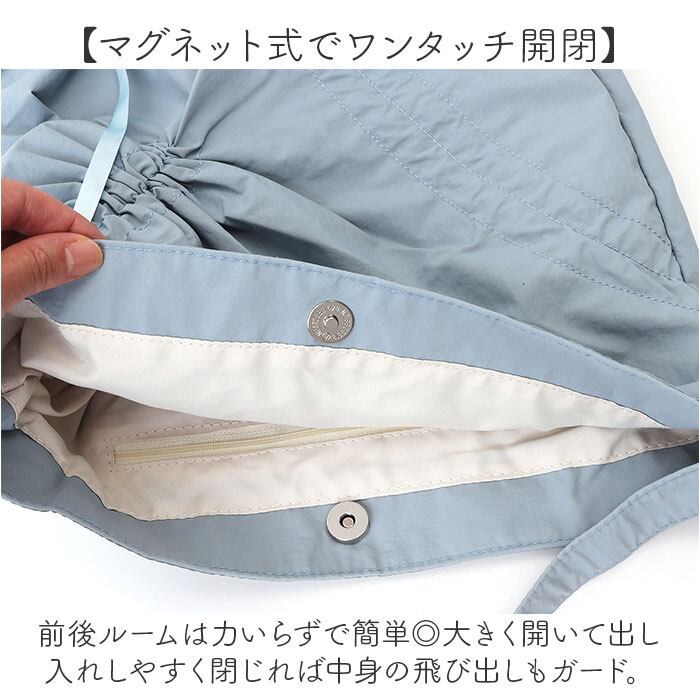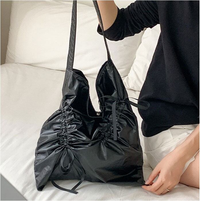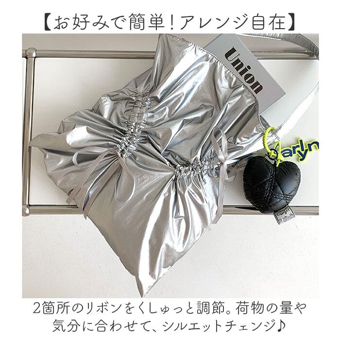 ・2箇所のリボンをくしゅっと調節。荷物の量や気分に合わせて、シルエットチェンジ♪