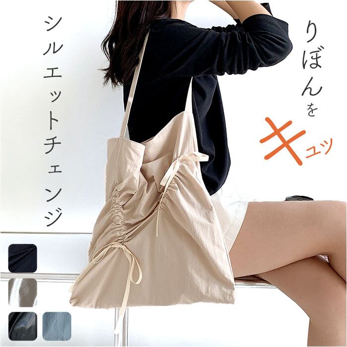 ・くしゅっと絞れるリボンがアクセント☆メインもサブ使いもできる「トートバッグ」。