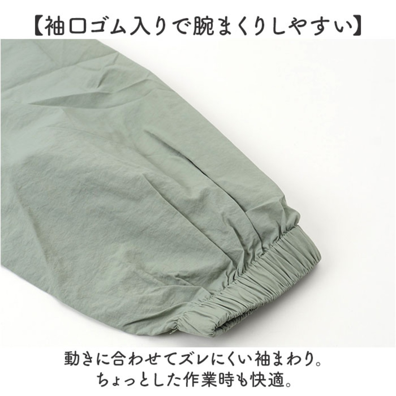 【袖口ゴム入りで腕まくりしやすい】