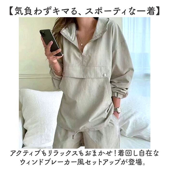 ・アクティブもリラックスもおまかせ!着回し自在なウィンドブレーカー風セットアップが登場。