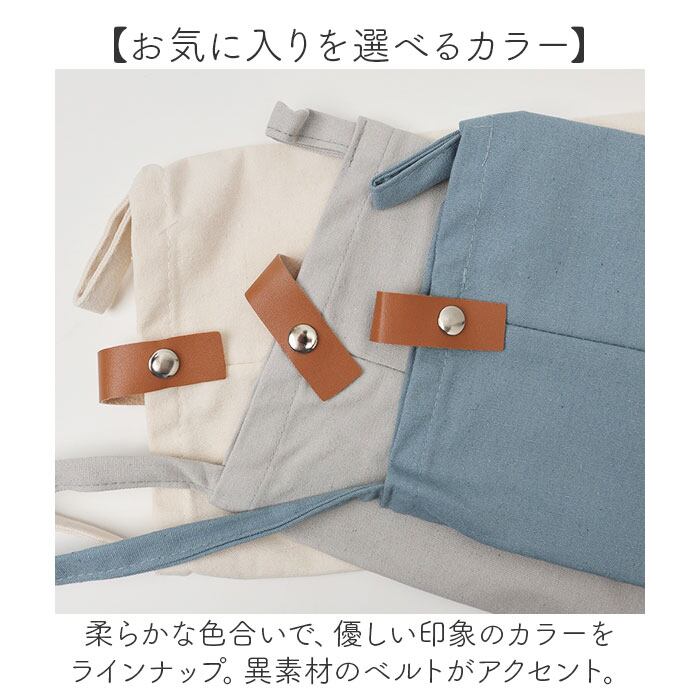 ・柔らかな色合いで、優しい印象のカラーをラインナップ。異素材のベルトがアクセント。