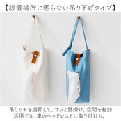 ・吊りヒモを調節して、サッと壁掛け。空間を有効活用でき、車のヘッドレストに取り付けも。