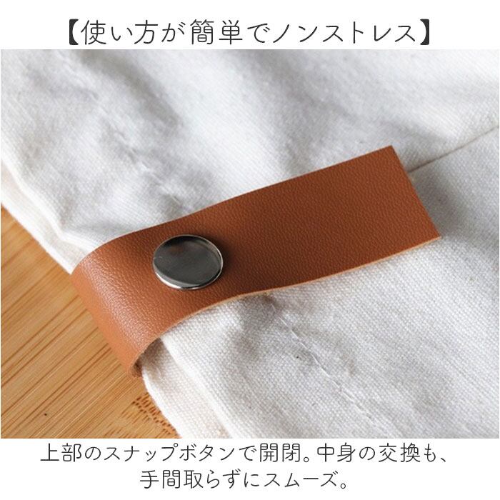 ・上部のスナップボタンで開閉。中身の交換も、手間取らずにスムーズ。