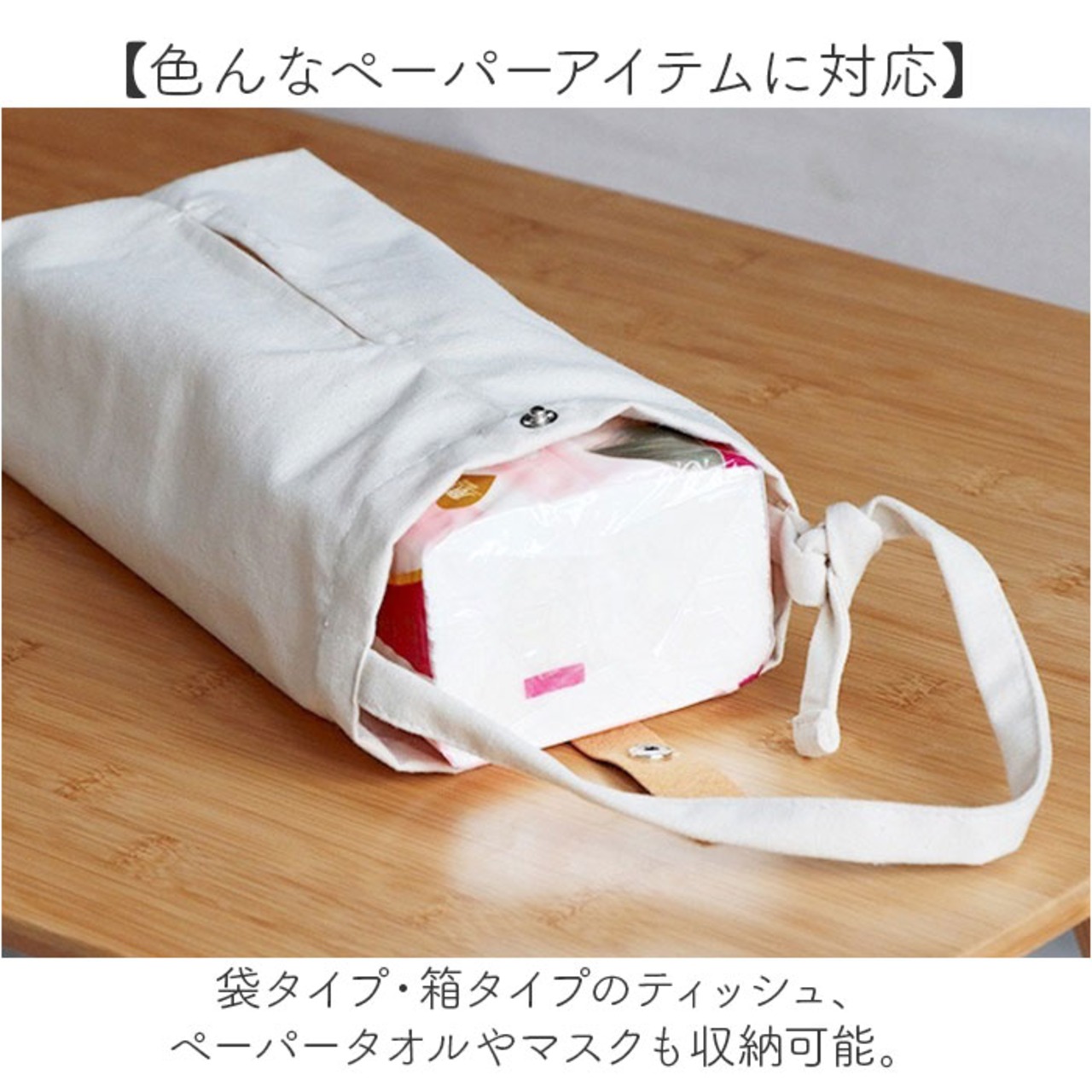 ・袋タイプ・箱タイプのティッシュ、ペーパータオルやマスクも収納可能。