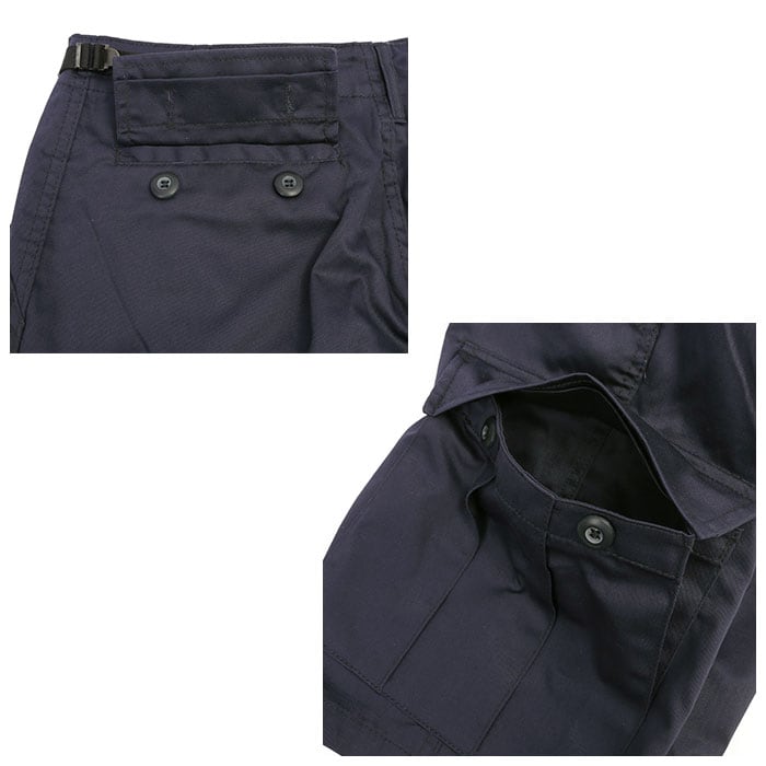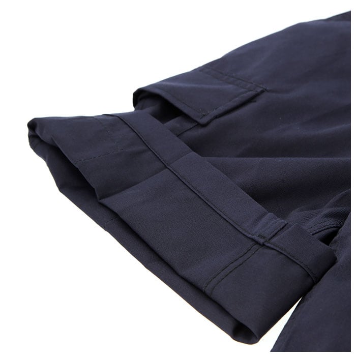 ・サイドとバックのカーゴポケットはボタン付き。小物が飛び出す心配がなく、ガジェット類の収納も安心。