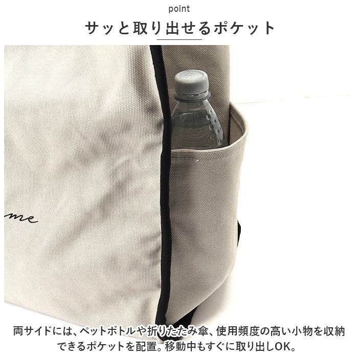 ・両サイドには、ペットボトルや折りたたみ傘、使用頻度の高い小物を収納できるポケットを配置。移動中もすぐに取り出しOK。