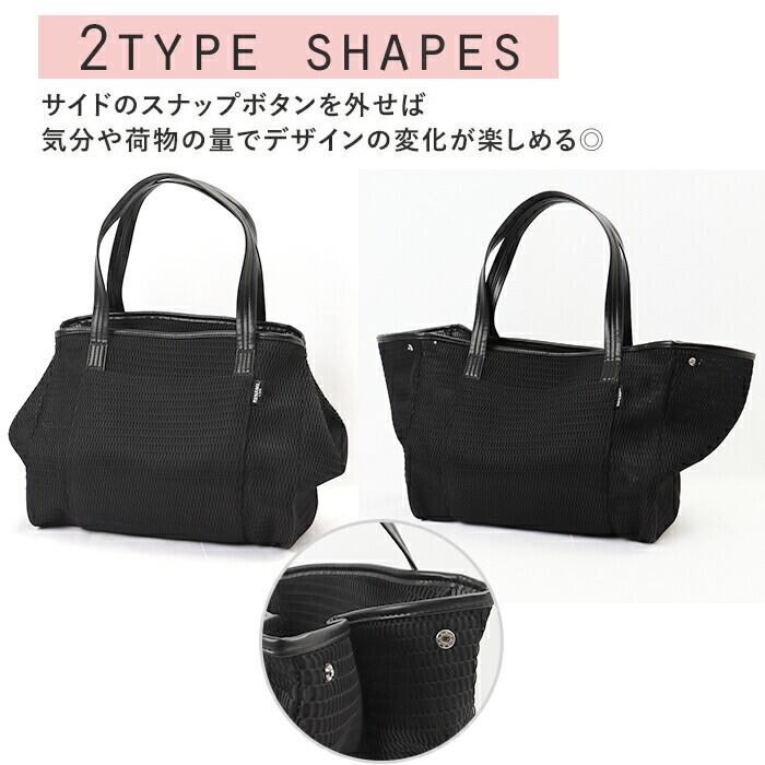 ・サイドのスナップボタンを外せば気分や荷物の量でデザインの変化が楽しめる◎