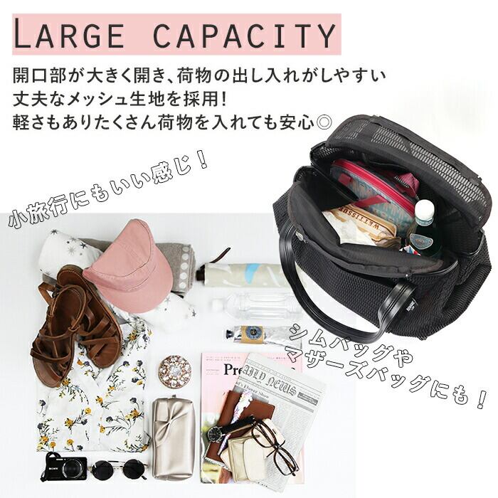 ・丈夫なメッシュ生地を採用!軽さもありたくさん荷物を入れても安心◎