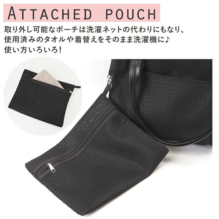 ・取り外し可能なポーチは洗濯ネットの代わりにもなり、使用済みのタオルや着替えを収納すればそのまま洗濯機に入れられるのもポイント。
