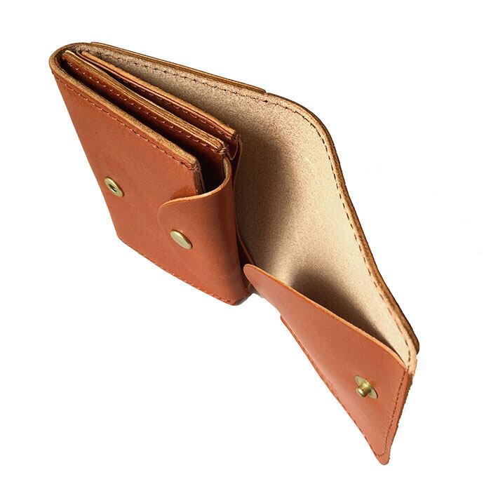 ・開口部はスナップボタン式。内側には札入れ×1、小銭入れ×1、カードポケット×1を装備。