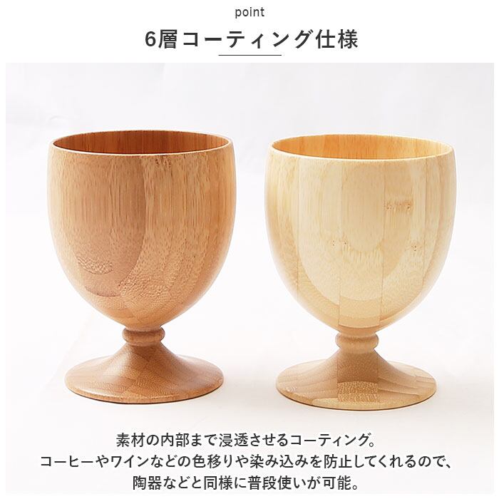 ・陶器やガラス製品に比べ熱伝導率が低いので、注がれる液体や外気の温度に左右されずゴブレット自体の温度が安定。