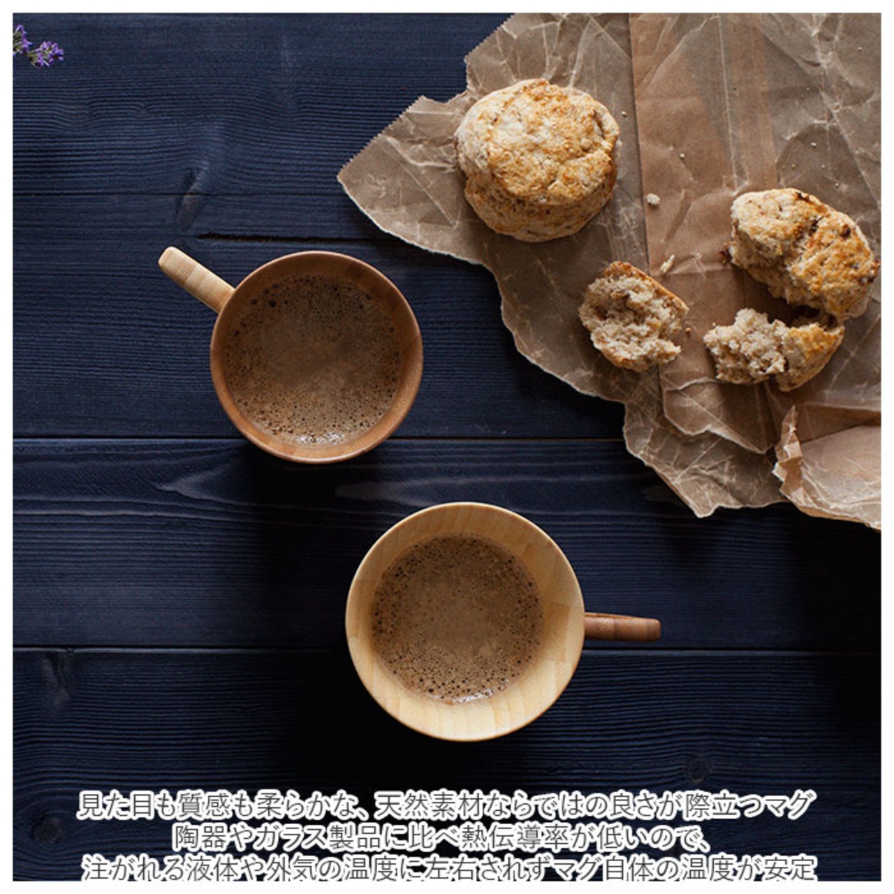 ・陶器やガラス製品に比べ熱伝導率が低いので、注がれる液体や外気の温度に左右されずマグ自体の温度が安定。コーヒーや紅茶の味わいを存分に楽しめるのが嬉しい♪