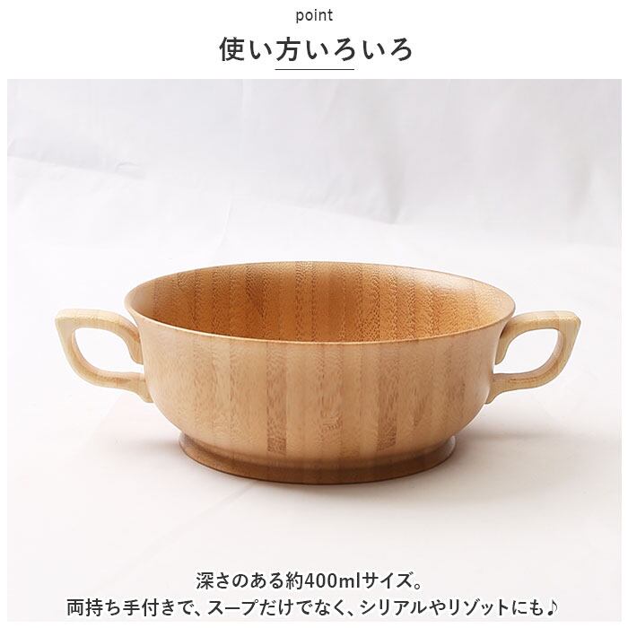 ・深さのある約400mlサイズ。両持ち手付きで、スープだけでなく、シリアルやリゾットにも♪