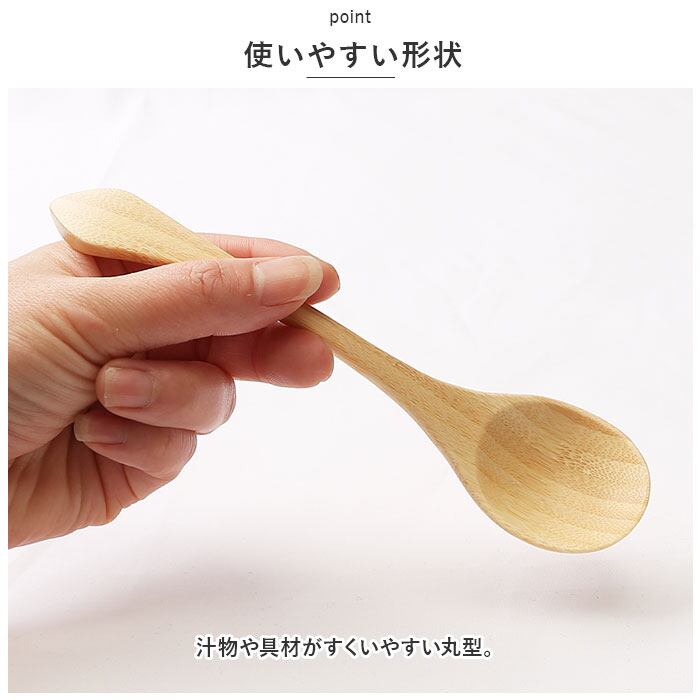 ・汁物や具材がすくいやすい丸型。