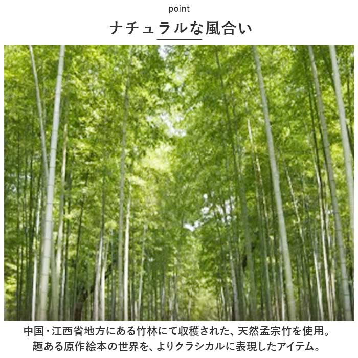 ・中国・江西省地方にある竹林にて収穫された、天然孟宗竹を使用。趣ある原作絵本の世界を、よりクラシカルに表現したアイテム。