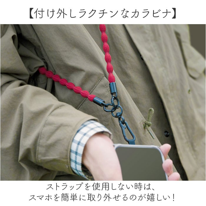 ・スマホを斜め掛けして持ち歩き♪サッと手に取りやすく、ポケットのない洋服でも大丈夫。