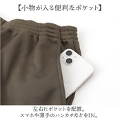 ・締め付けのないウエストゴム仕様。ボタンやファスナーがなく、着替えも手間取らない◎