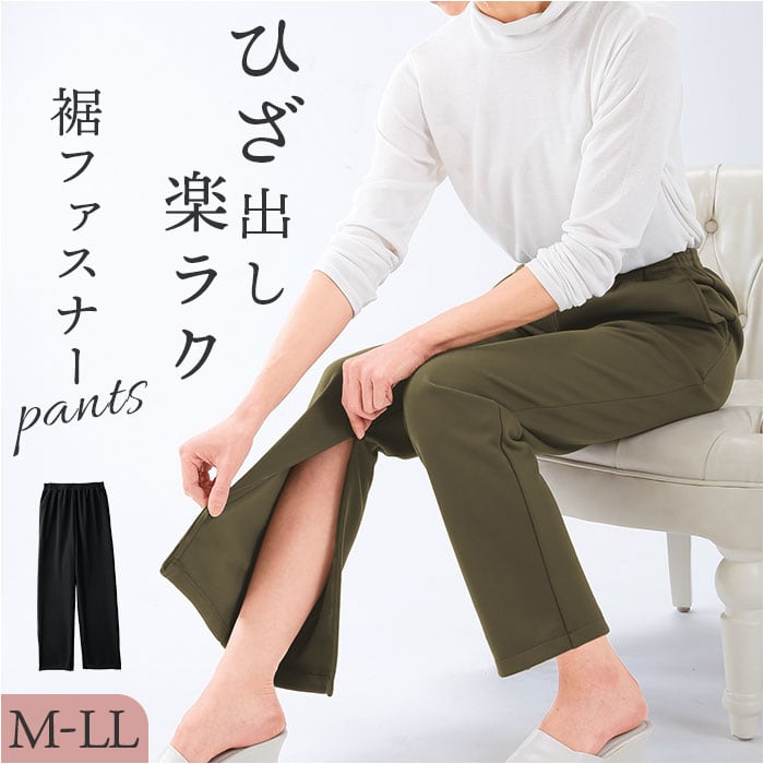 ・シンプルなパンツに見えて、とっても便利◎「快適裾ファスナー付きパンツ」。