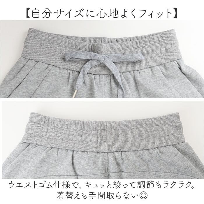 ・ウエストゴム仕様で、キュッと絞って調節もラクラク。着替えも手間取らない◎