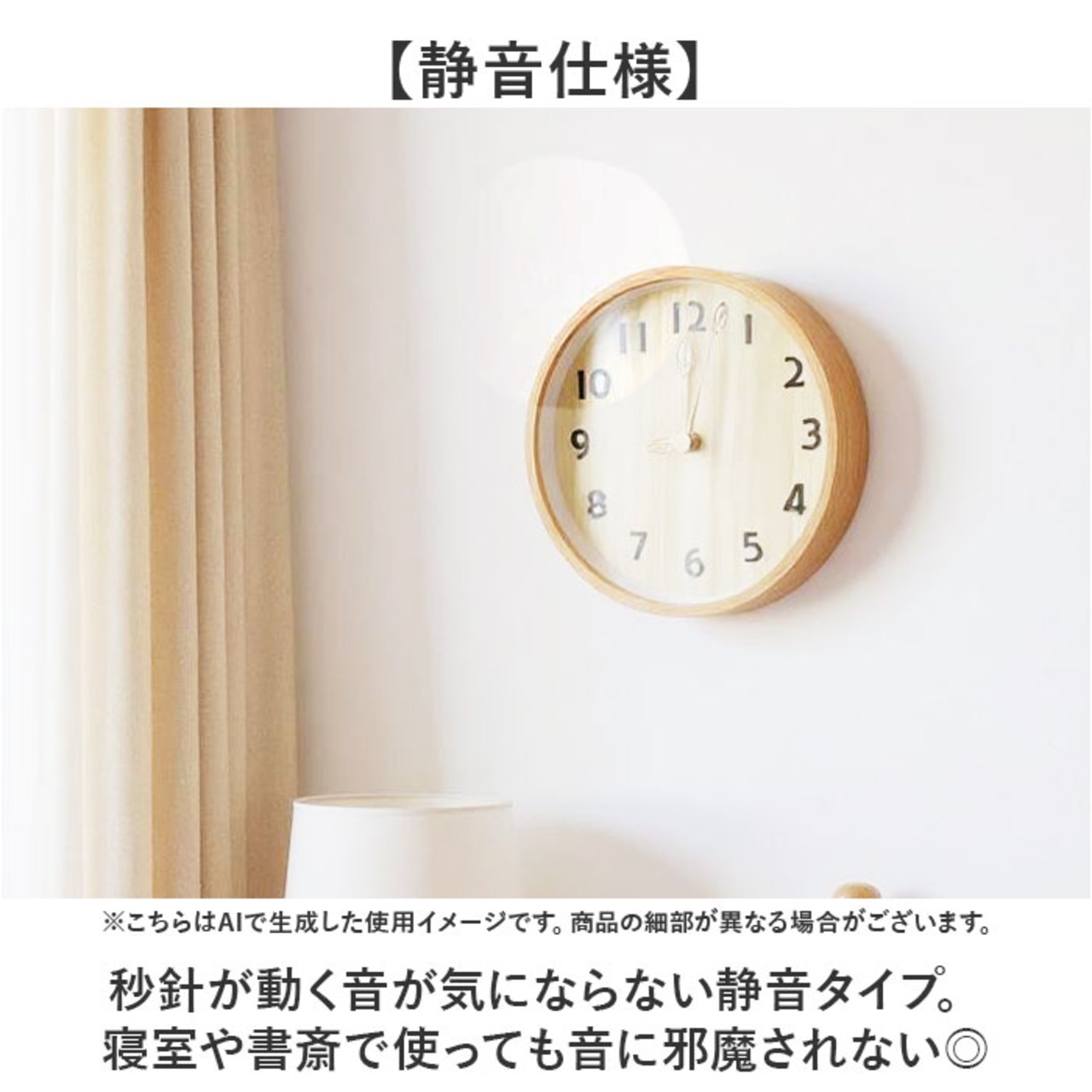・秒針が動く音が気にならない静音タイプ。寝室や書斎で使っても音に邪魔されない◎