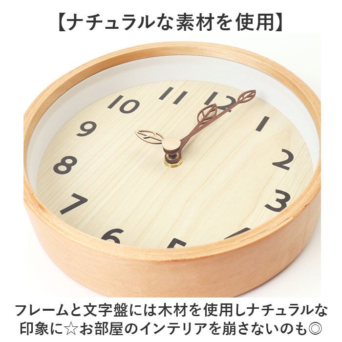 ・フレームと文字盤には木材を使用しナチュラルな印象に☆お部屋のインテリアを崩さないのも◎