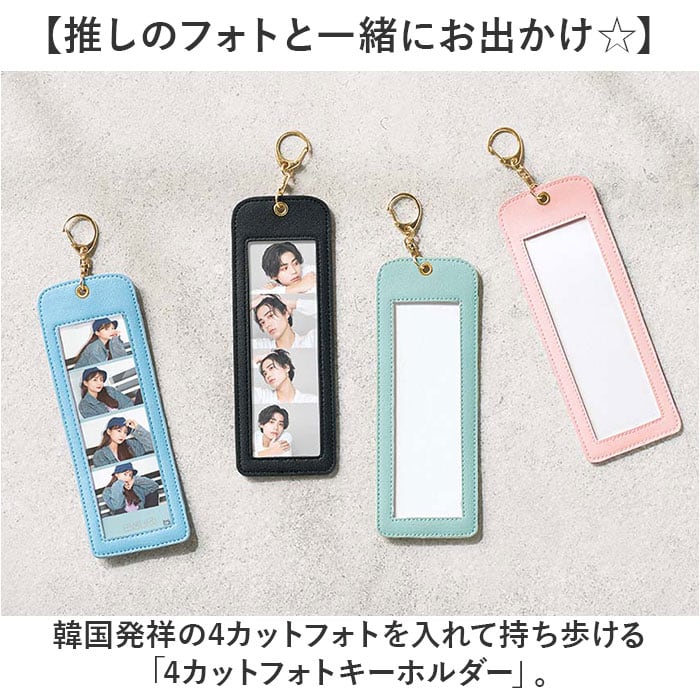 ・韓国発祥の4カットフォトを入れて持ち歩ける「4カットフォトキーホルダー」。
