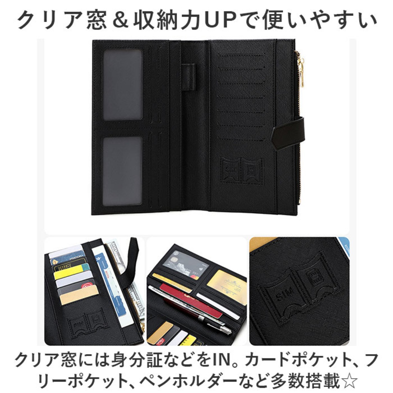 ・クリア窓には身分証などをIN。カードポケット、フリーポケット、ペンホルダーなど多数搭載☆