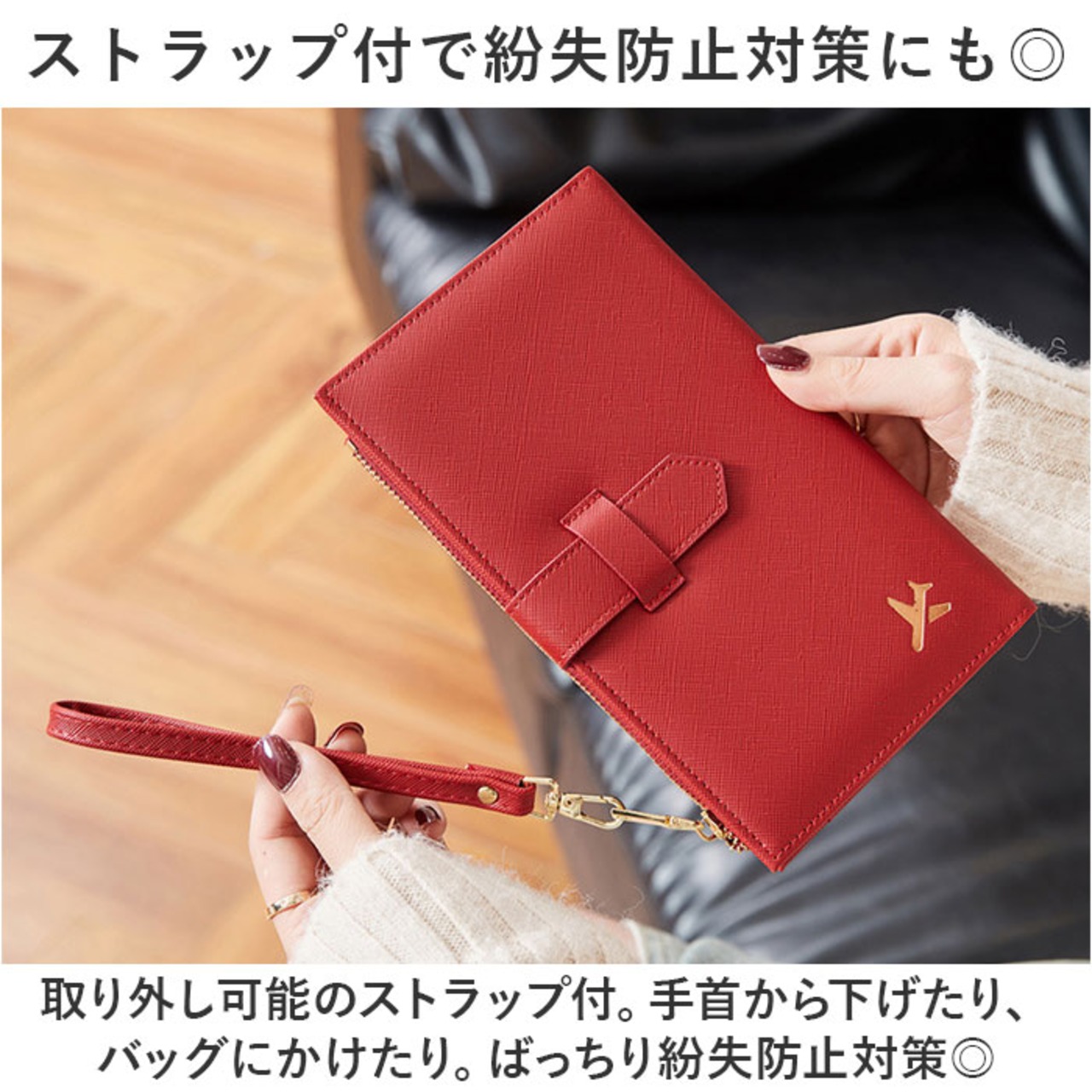 ・取り外し可能のストラップ付。手首から下げたり、バッグにかけたり。ばっちり紛失防止対策◎