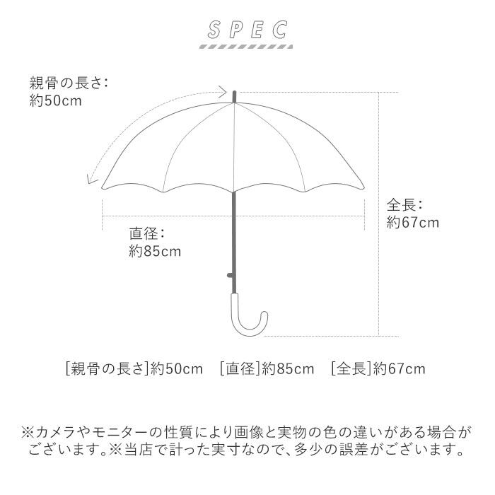 ※傘生地には防水はっ水加工を施していますが激しい雨や長時間のご使用では雨が染み込むことがあります。降雨量が20mm以上の場合、ある程度使用されますと漏水の恐れがありますのでご注意下さい。