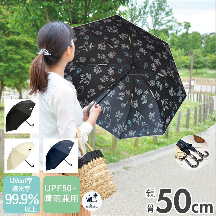 傘 レディース 長傘 通販 晴雨兼用 可愛い 手開き UV CUT率 99.9% 雨傘 日傘 UV ケア カット ブランド ミクニ 三国 遮光 婦人傘 パラソル アンブレラ 熱中症対策 スポーツ観戦 かさ 黒PU 8本骨 50 cm s15005