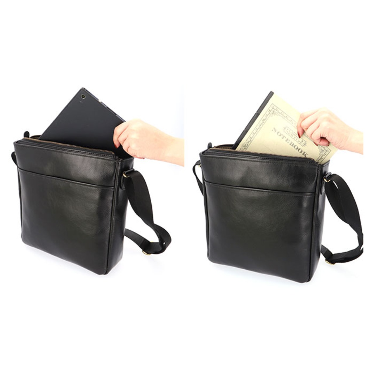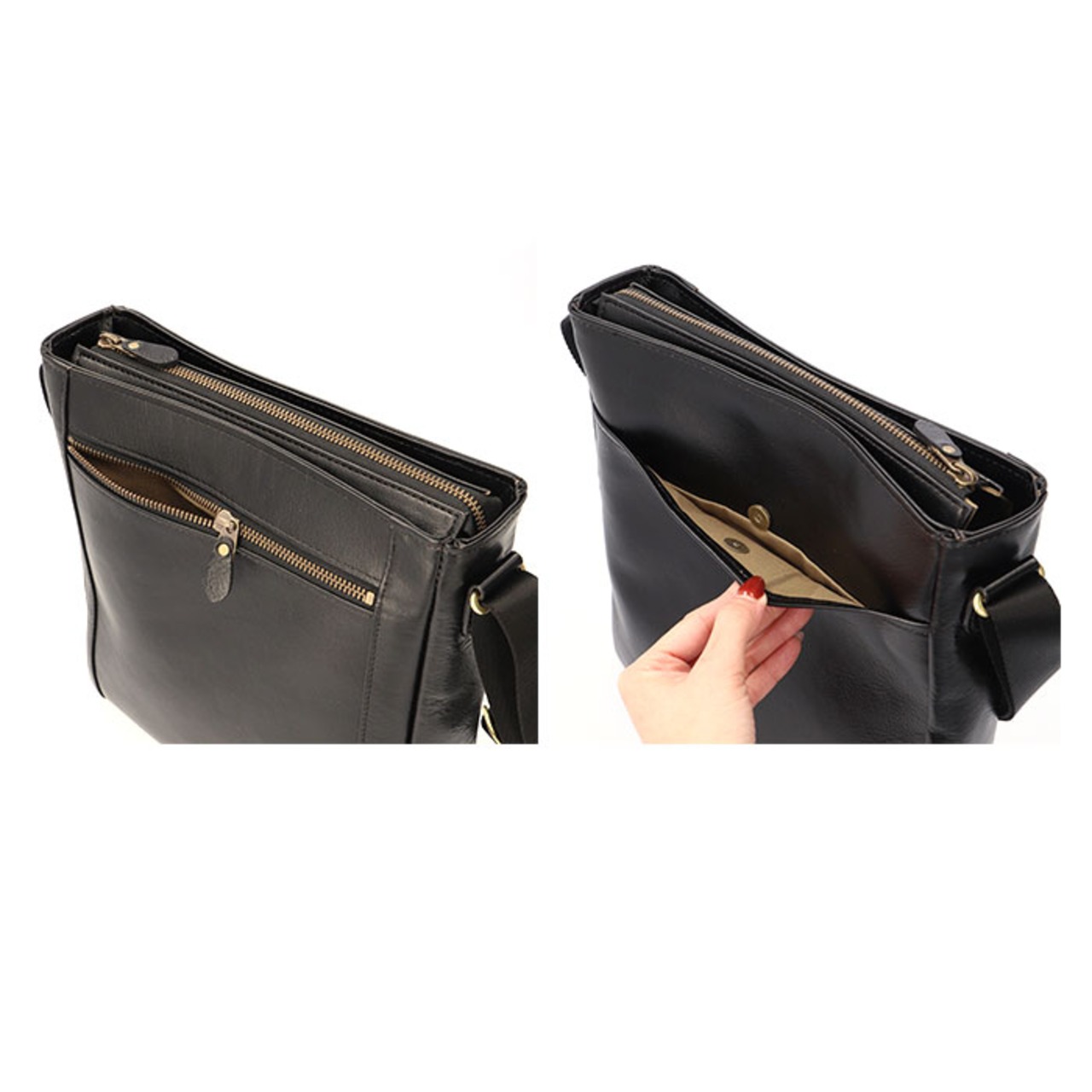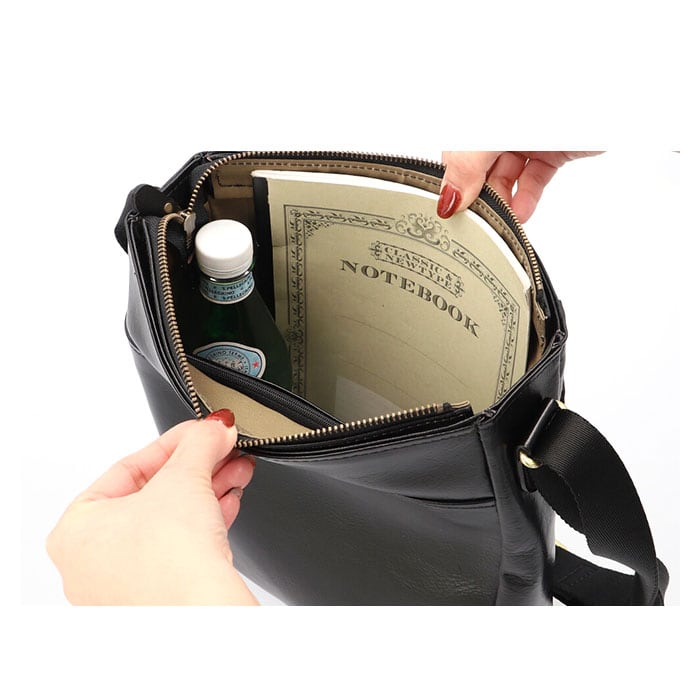 ・バッグの開口部は、小物が飛び出す心配のない天ファスナー仕様で、満員電車などの人混みでも安心。