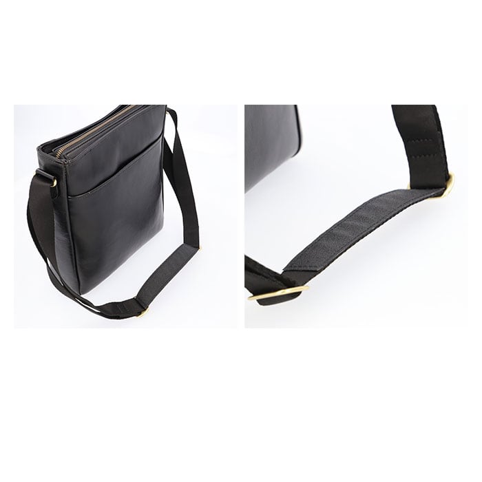 ・長さ調節のできるショルダーベルトはレザー素材の滑り止めを施し、肩に心地よくフィットする仕様。