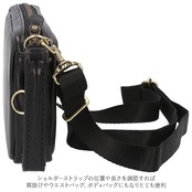 ・サイドのハンドルで手持ちに、ショルダーストラップの位置や長さを調節すれば肩掛けやウエストバッグ、ボディバッグにもなりとても便利。