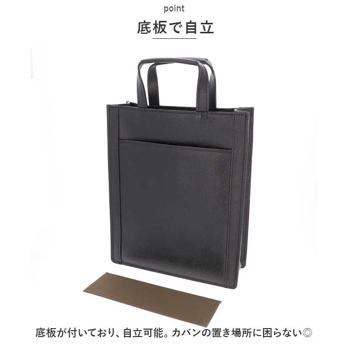 ・底板が付いており、自立可能。カバンの置き場所に困らない◎