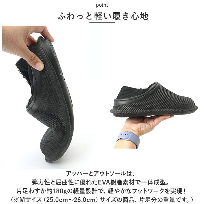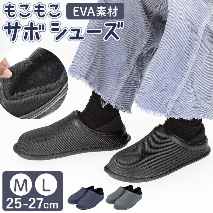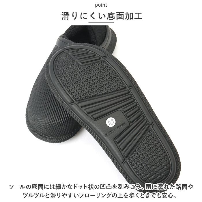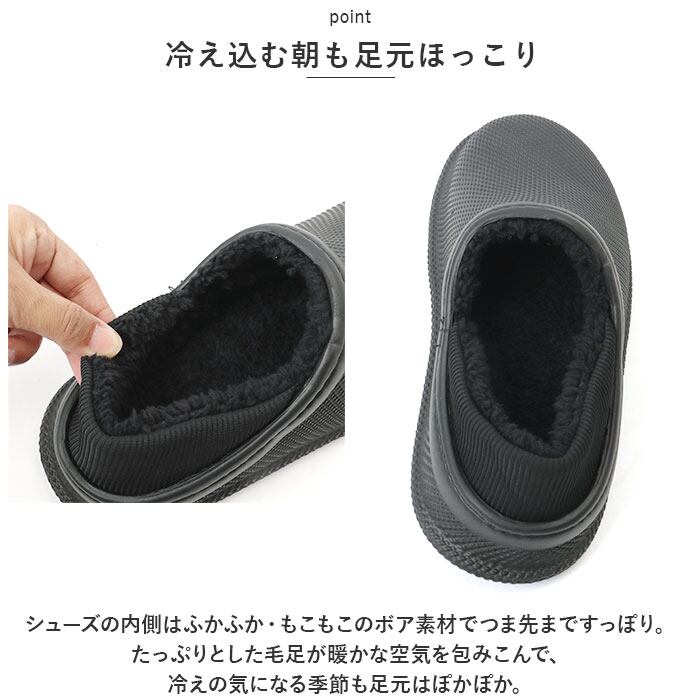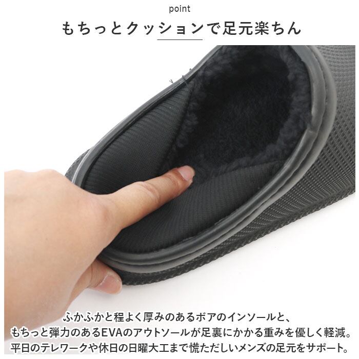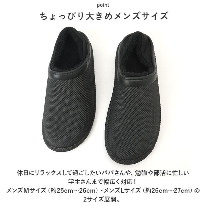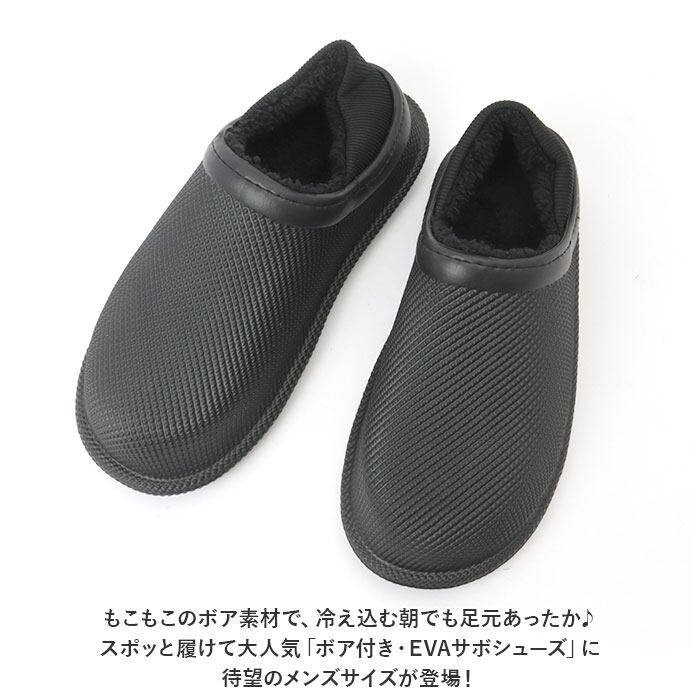・もこもこのボア素材で、冷え込む朝でも足元あったか♪スポッと履けて大人気「ボア付き・EVAサボシューズ」に待望のメンズサイズが登場!
