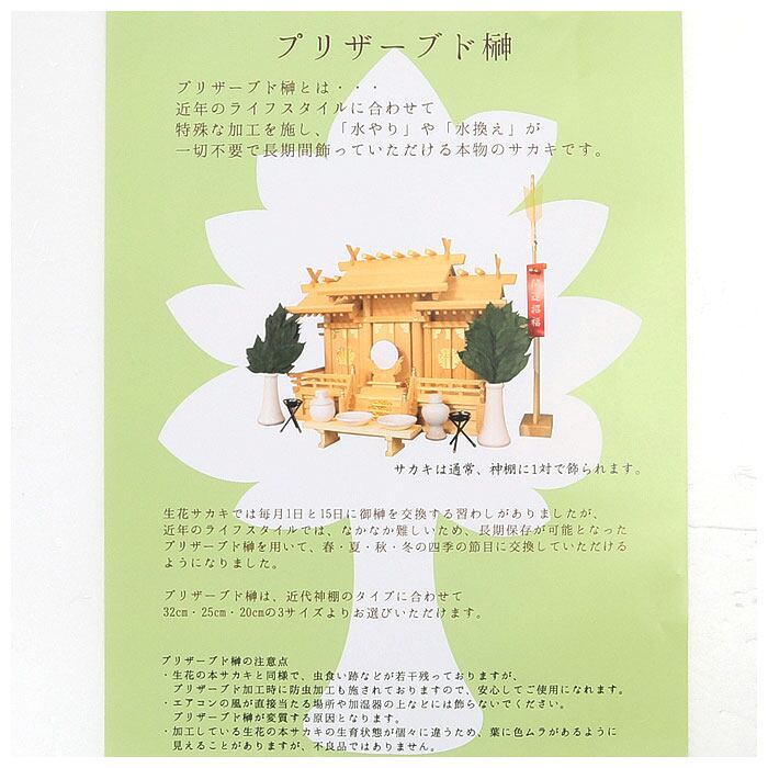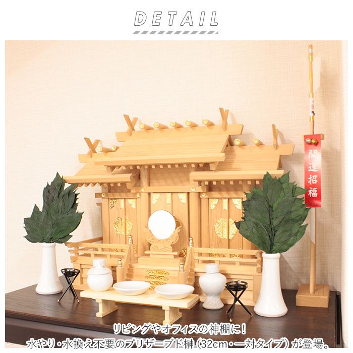 ・リビングやオフィスの神棚に!水やり・水換え不要のプリザーブド榊(32cm・一対タイプ)が登場。