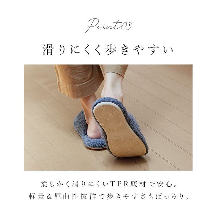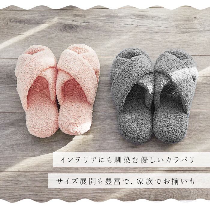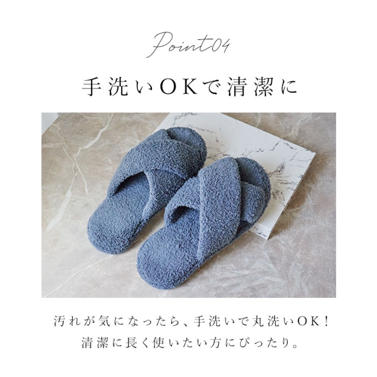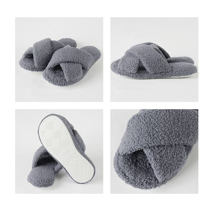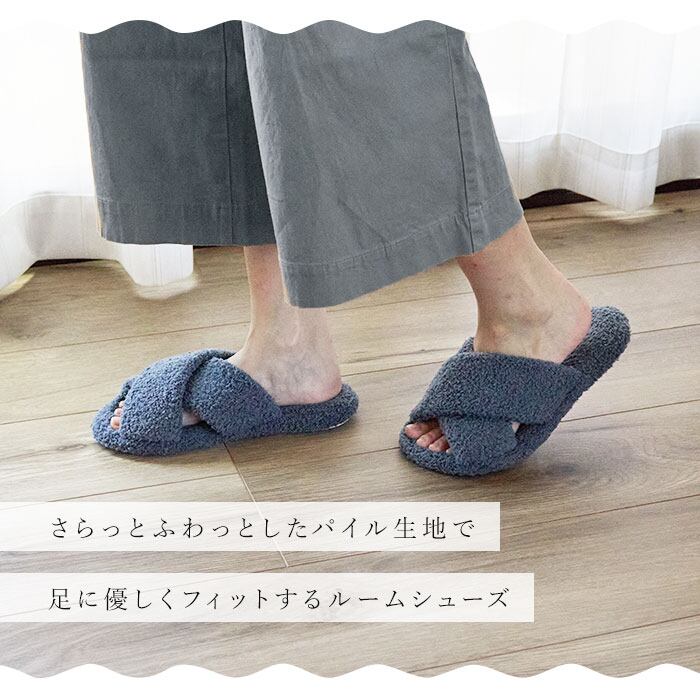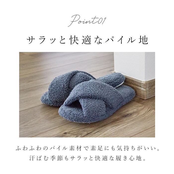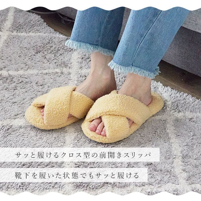 ・クロス型の前開きスリッパなので、靴下を履いたままでもサッと履けちゃう★