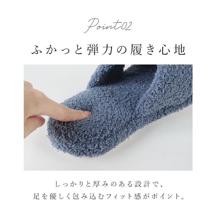 ・ふわふわのパイル素材がが足に優しくフィット。汗ばむ季節もサラッと快適な履き心地。